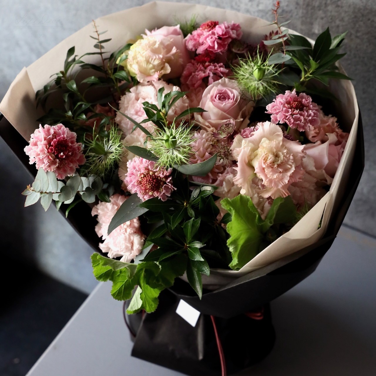 特選花束ML「焦香 kogareko」繊細な美しさが響く、ニュアンスカラーのブーケ