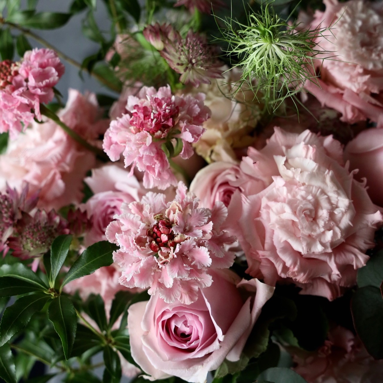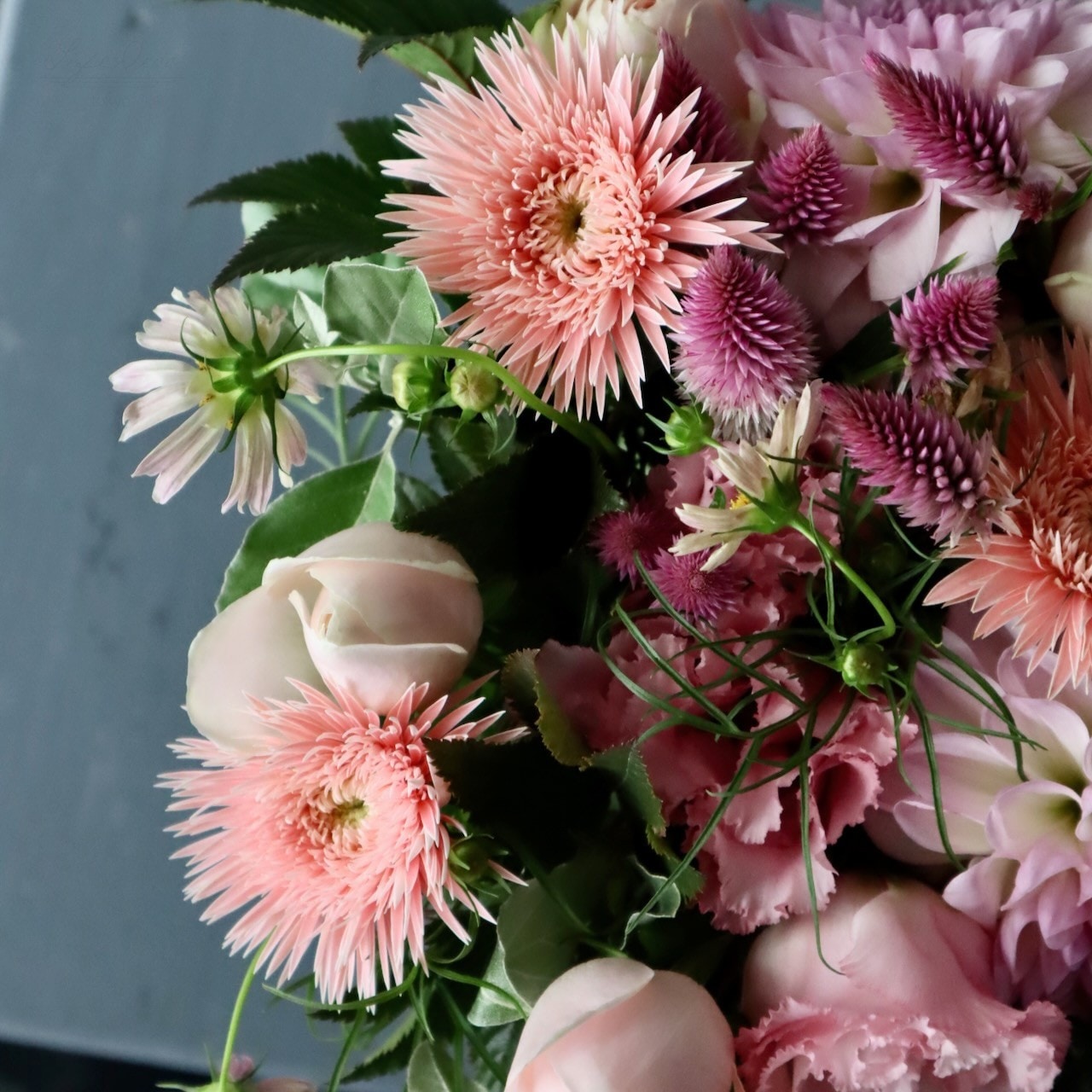 アレンジメントML「白桃 hakuto」どことなく水彩画のような優しげな奥行き感 レディライクなホワイト&ピンク
