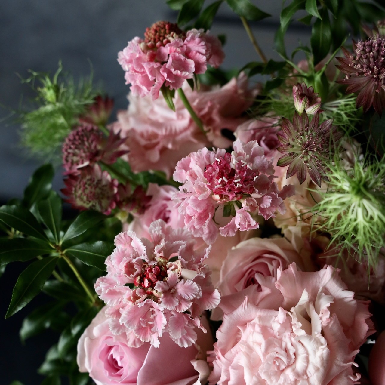 特選花束M「焦香 kogareko」繊細な美しさが響く、ニュアンスカラーのブーケ