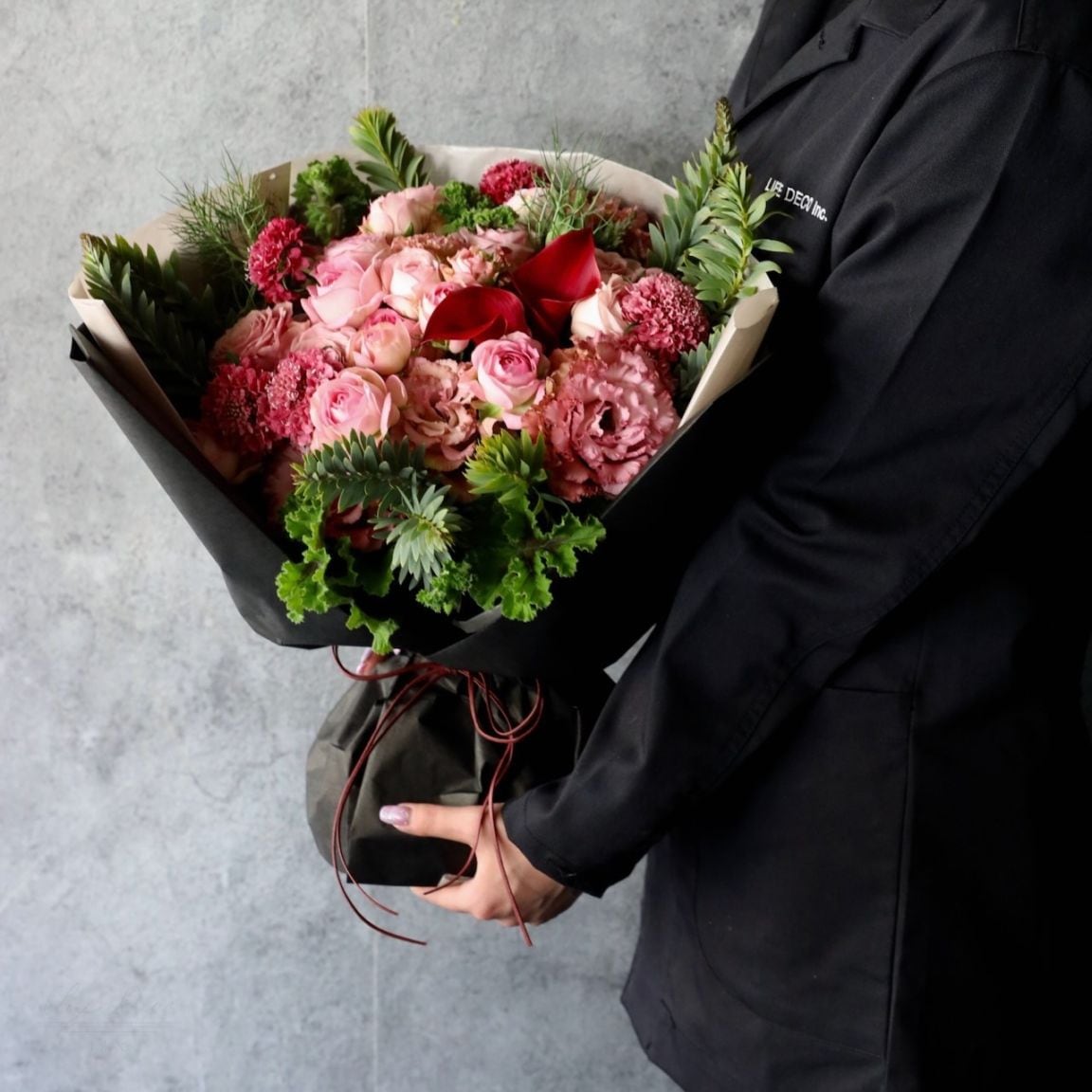 特選花束M「桃華 toka」可憐さに深みを重ねた、大人ピンクの濃淡