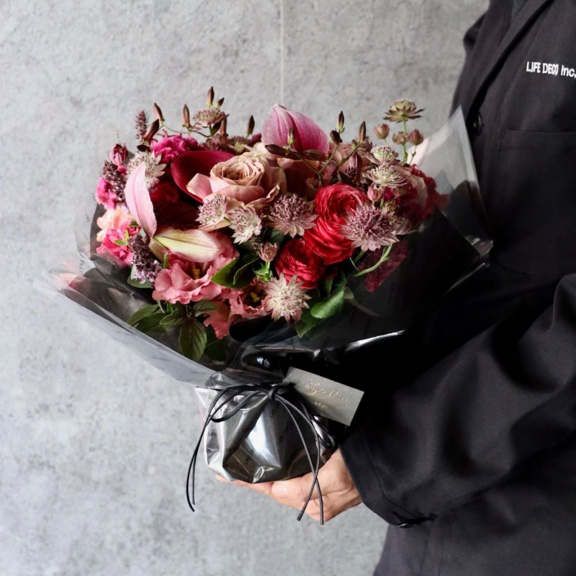 特選花束ML「桃華 toka」可憐さに深みを重ねた、大人ピンクの濃淡